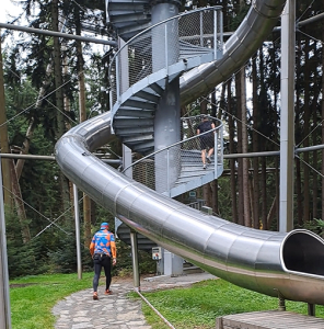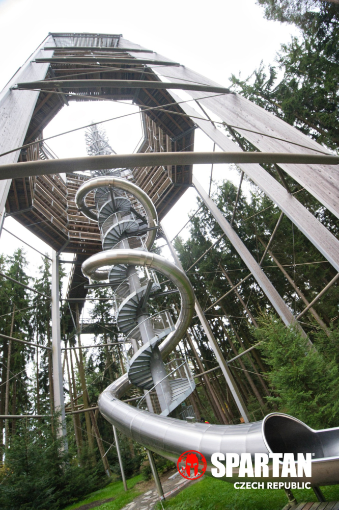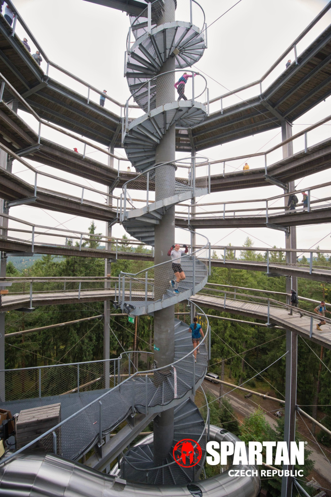 A potom prišiel úsek, na ktorý som sa tešil – výbeh po schodoch na vežu v korunách stromov.