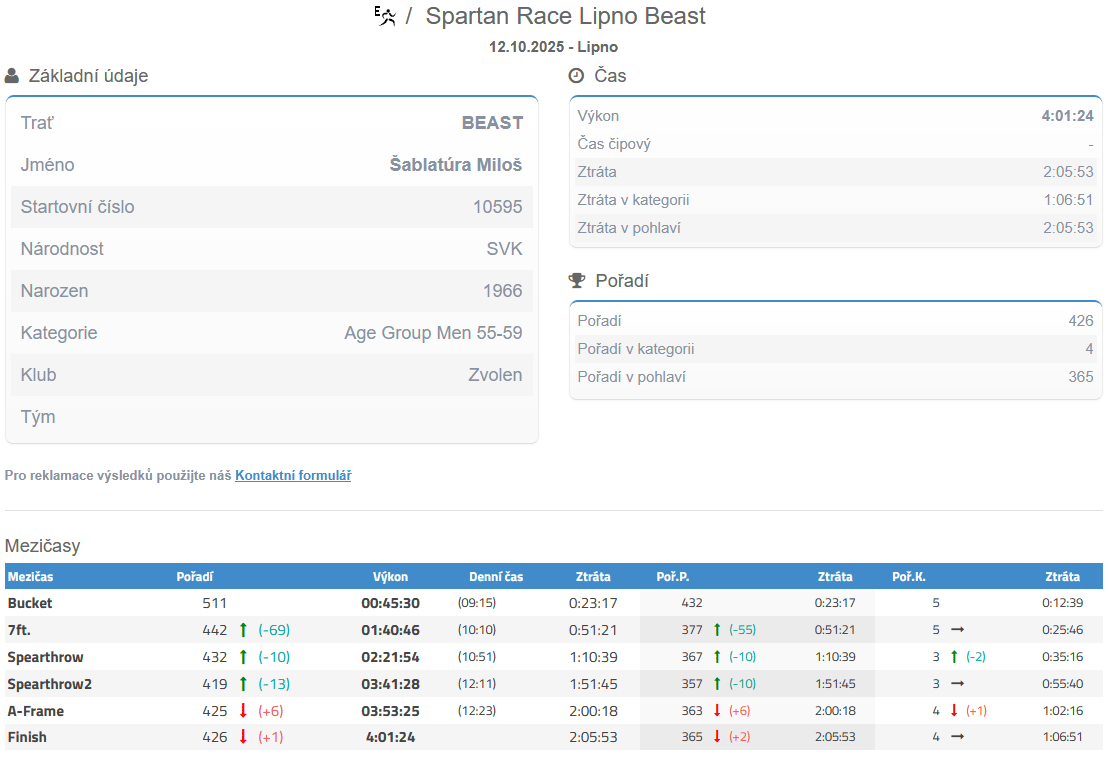 BEAST nie je len pretek. Je to skúška vytrvalosti, trpezlivosti a úprimnosti voči sebe. Tento rok bol pre mňa posledný Spartan v tejto kategórii. Budúci rok vstupujem do 60+, do poslednej. Znie to zvláštne, ale cítim pokoj.